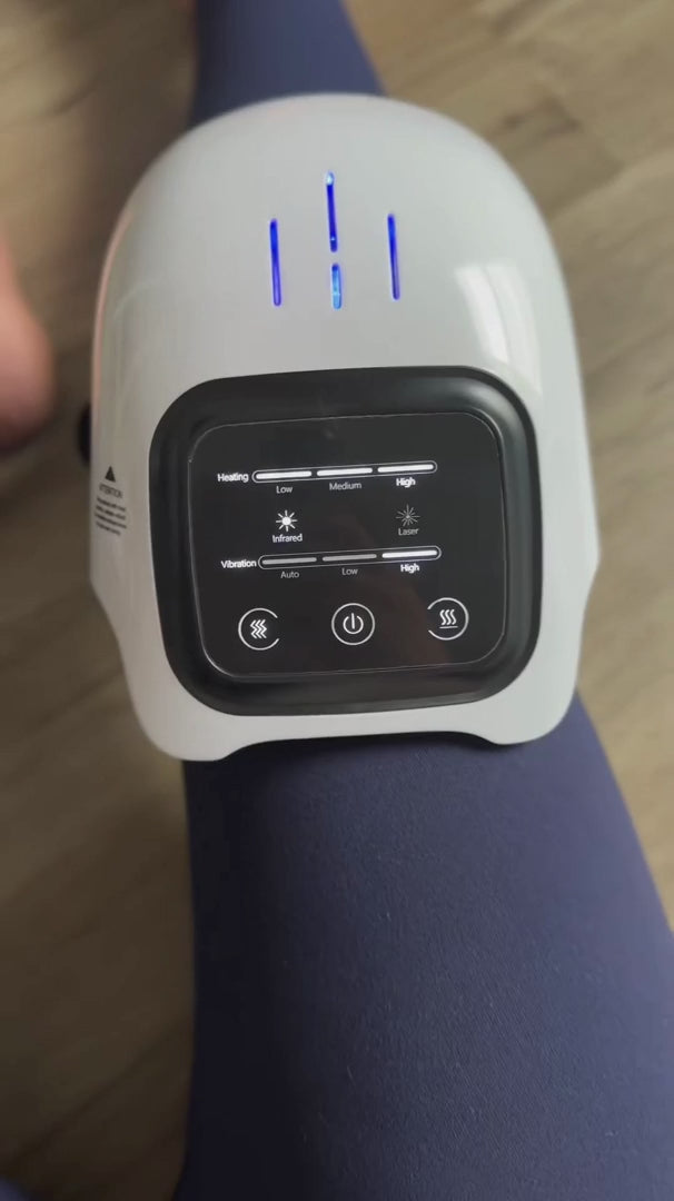 Ein modernes Massagegerät, das Wärme, Vibration und Infrarot-Technologie vereint, um dein Knie sanft zu entspannen und dein Wohlbefinden zu unterstützen. Die angenehme Wärme kann dabei helfen, die Muskeln zu lockern.